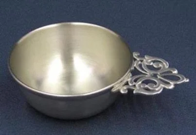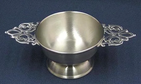 The Scottish Quaiche or Quaich originated from the common cup of the Middle Ages. A host would drink from the cup to prove to guests that no poison would be served. As the art of poisoning became passé, the Quaiche is used for weddings and other celebrations.